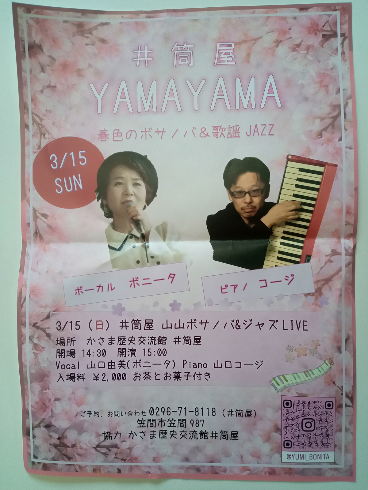 笠間歴史交流館井筒屋で、ボーカル山口由美さん(ボニータ)とジャズピアニスト山口コージさんによるライブが開催されます。春を感じるボサノバやジャズアレンジの昭和歌謡など、楽しく心地よい音楽が楽しめるステージです。休憩時にはお … 続きを読む 笠間の井筒屋で春のジャズ&ボサノバライブ開催【3/15(日)】