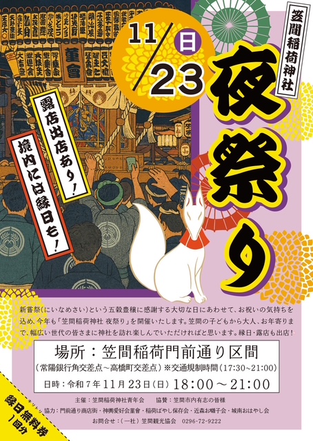 笠間の菊まつり期間中に行われる「笠間稲荷神社 夜祭り」。
