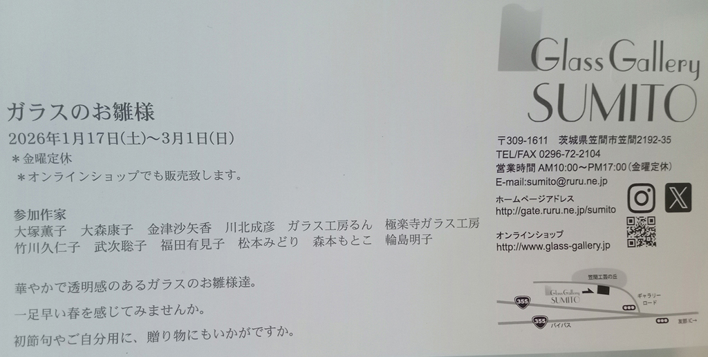 グラスギャラリーSUMITOでは、2026年1月17日(土)から3月1日(日)まで、「ガラスのお雛様」展が開催されています。