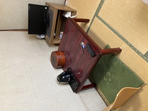 お部屋は畳の和室で、布団・座卓・テレビ・電気ケトルなど必要な設備は一通り。