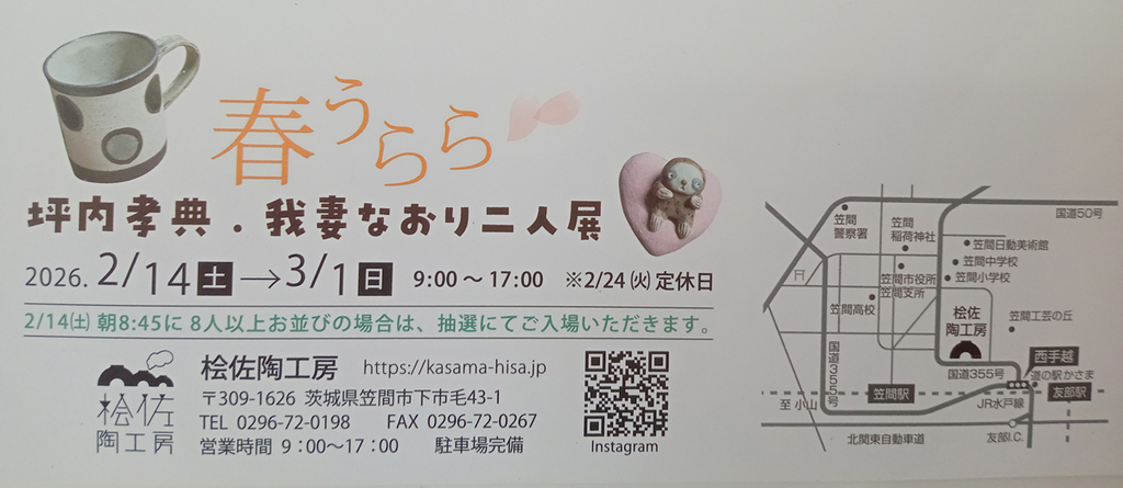 笠間市の桧佐陶工房で「坪内孝典 我妻なおり二人展」が開催されます。